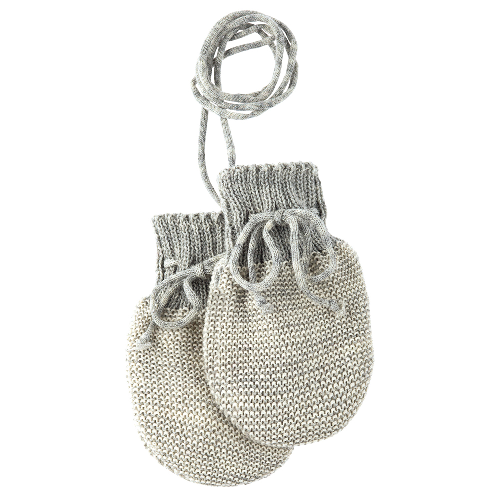 Hřejivé rukavičky pro nejmenší ze 100% organické merino vlny. Příjemně jemňoučké, pro miminka od 0-4 měsíců, spojené šňůrkou na provléknutí pod bundou.