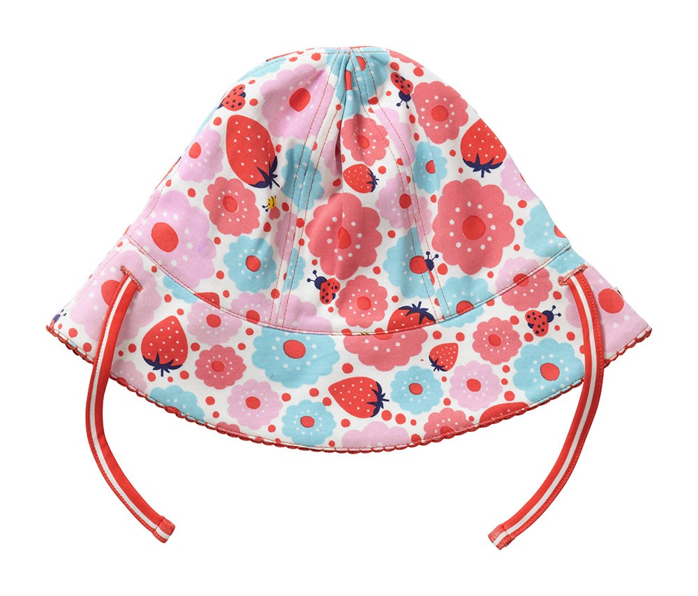 PICCALILLY Oboustranný klobouček jahůdky/kytičky biobavlna